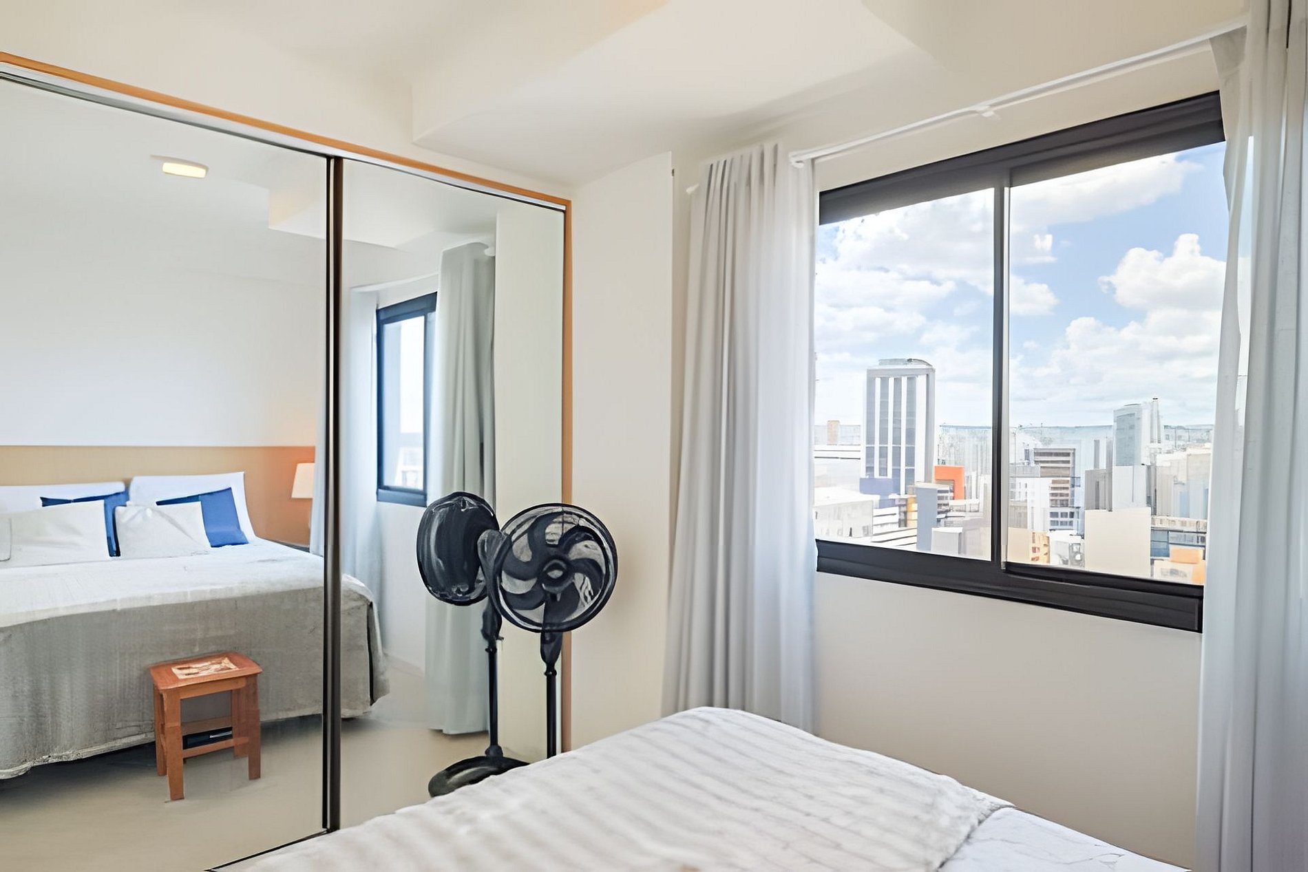 • Armários com espelhos para guardar as roupas
