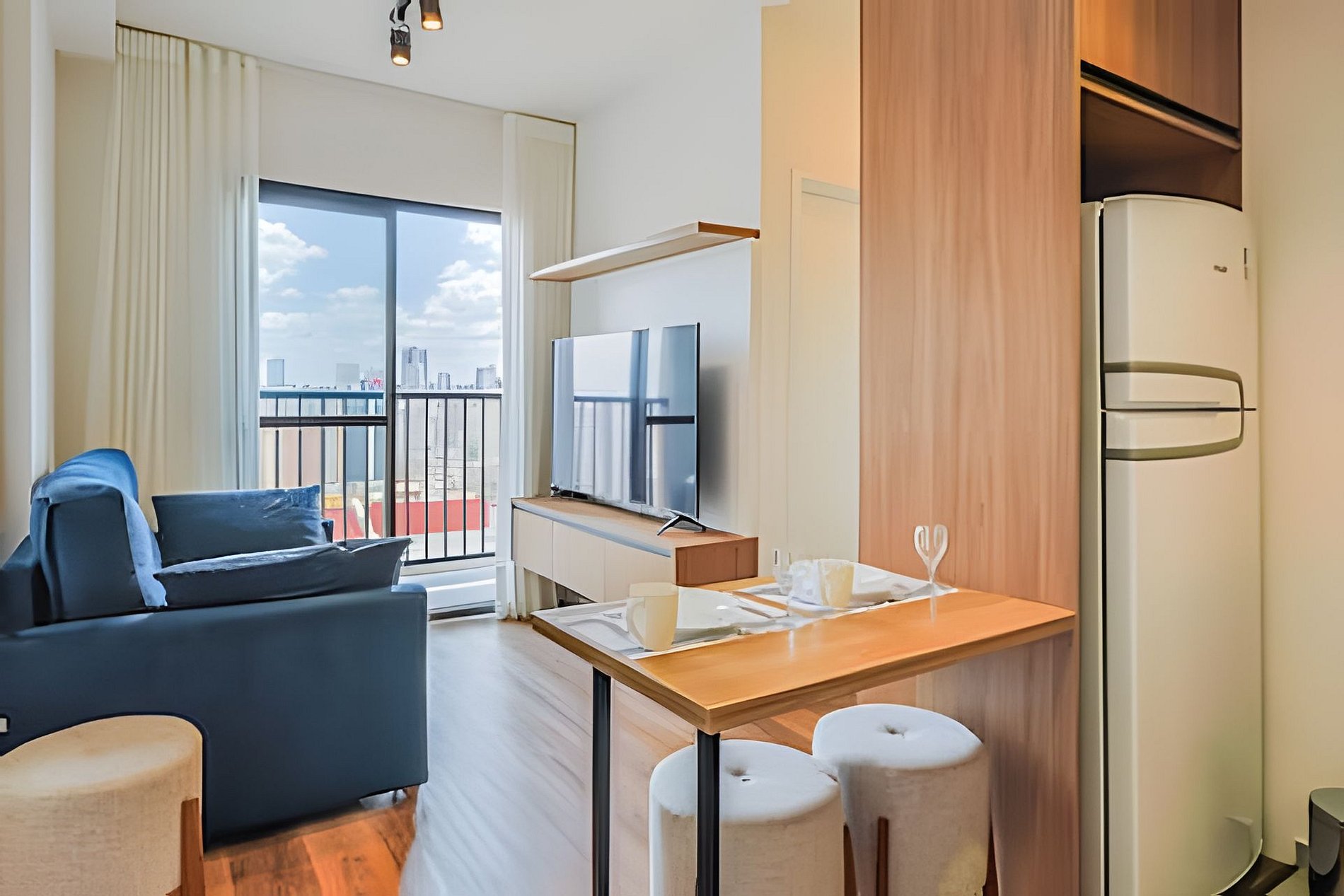 Cobramos uma taxa de limpeza para que você receba o apartamento sempre bem higienizado e, ao final da estadia, ele seja preparado com o mesmo cuidado para o próximo hóspede.